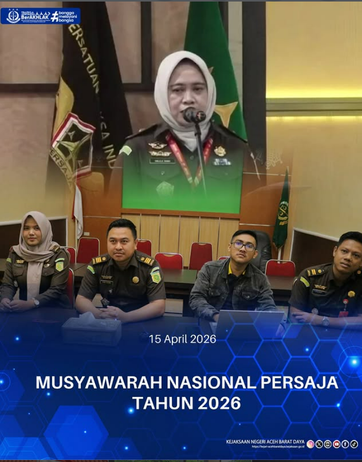 Rabu (15/04/2026). Para Kasi dan Kasubsi Negeri Aceh Barat Daya mengikuti Musyawarah Nasional PERSAJA Tahun 2026 secara daring di Ruang Vicon Lt. II Kejaksaan Negeri Aceh Barat Daya